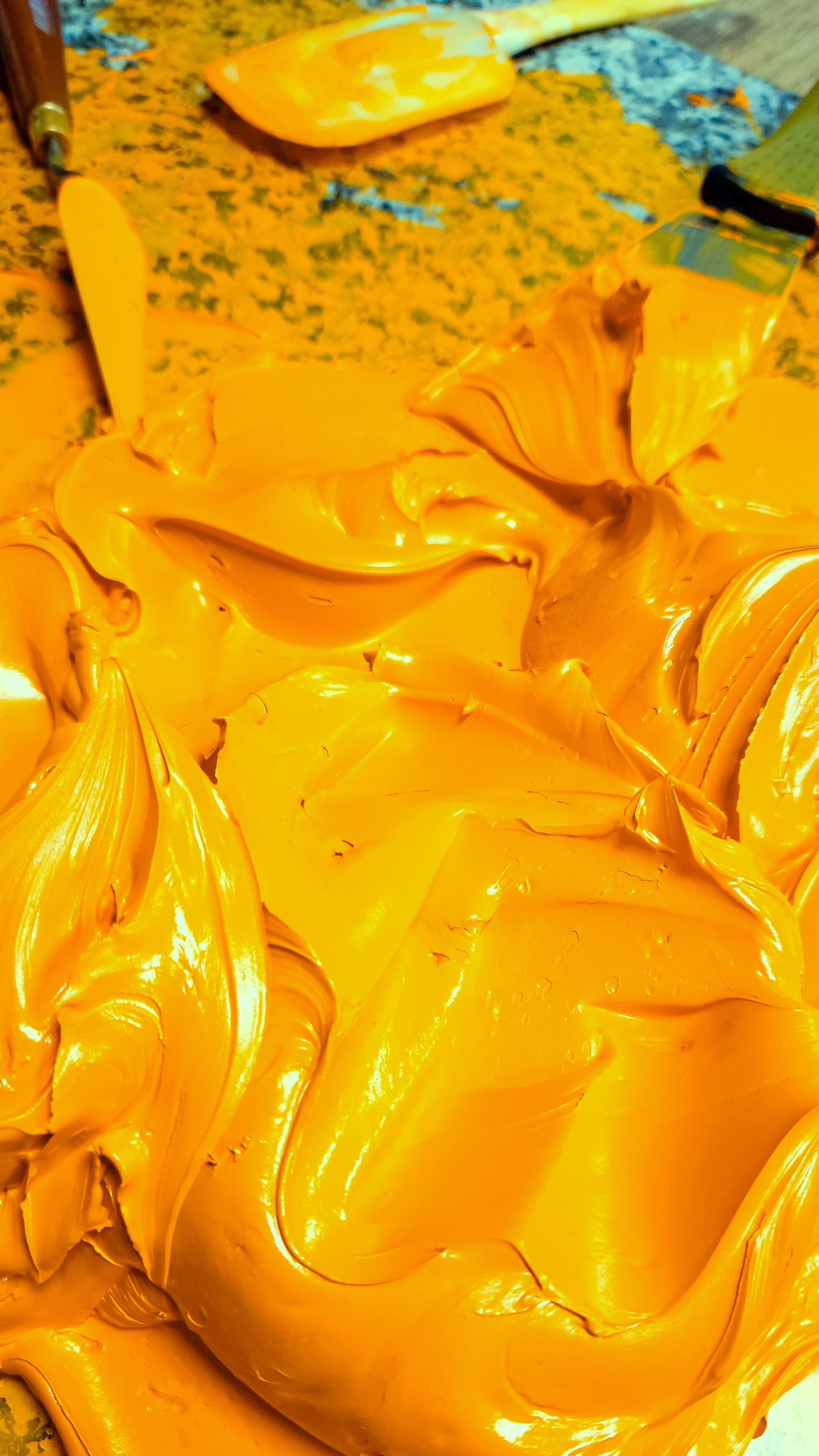A pure, fiery orange of maximum chroma (PO20 — cadmium sulphoselenide). Fully opaque and exceptionally permanent. It is essential for sunlit passages and warm flesh tones. Tinted with white it yields surprisingly delicate peachy pinks — a colour that announces itself on the canvas with complete confidence.