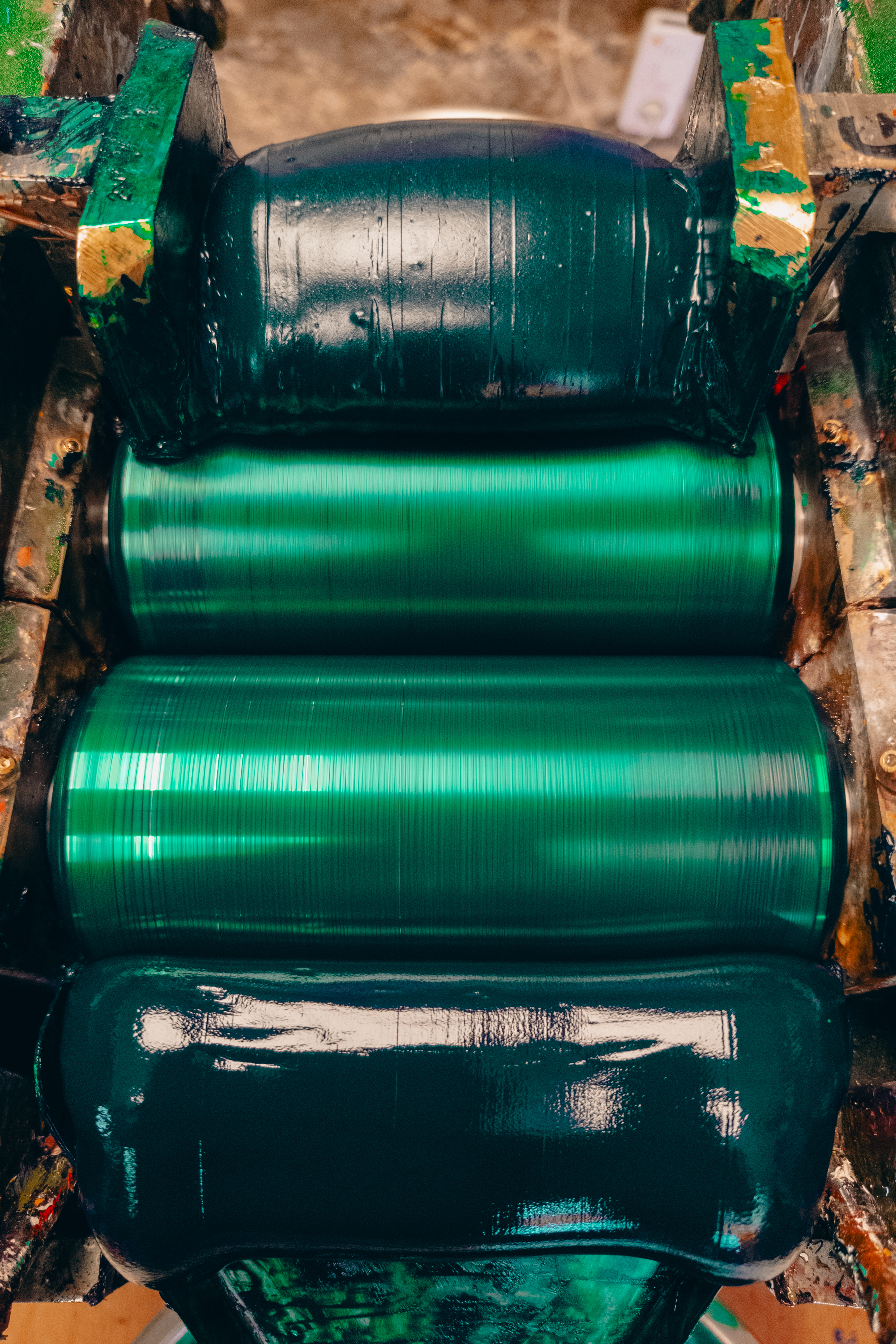 One of the most powerful greens in existence — a colour to be used with great care. PG7 (chlorinated copper phthalocyanine), fully transparent and non-toxic, is near-black in masstone but an electric blue-green in thin glazes. A tiny amount is enough to dominate any mixture. Note: a metallic bronzing may appear in very thick applications — a natural characteristic of this pigment, not a defect.