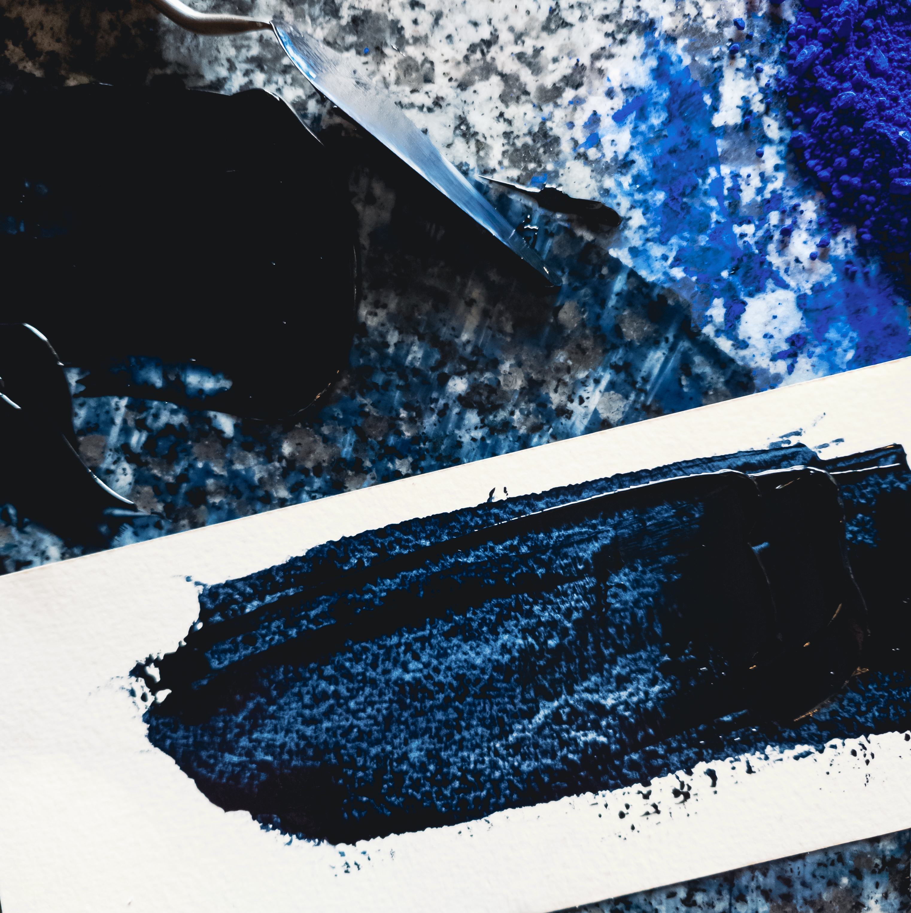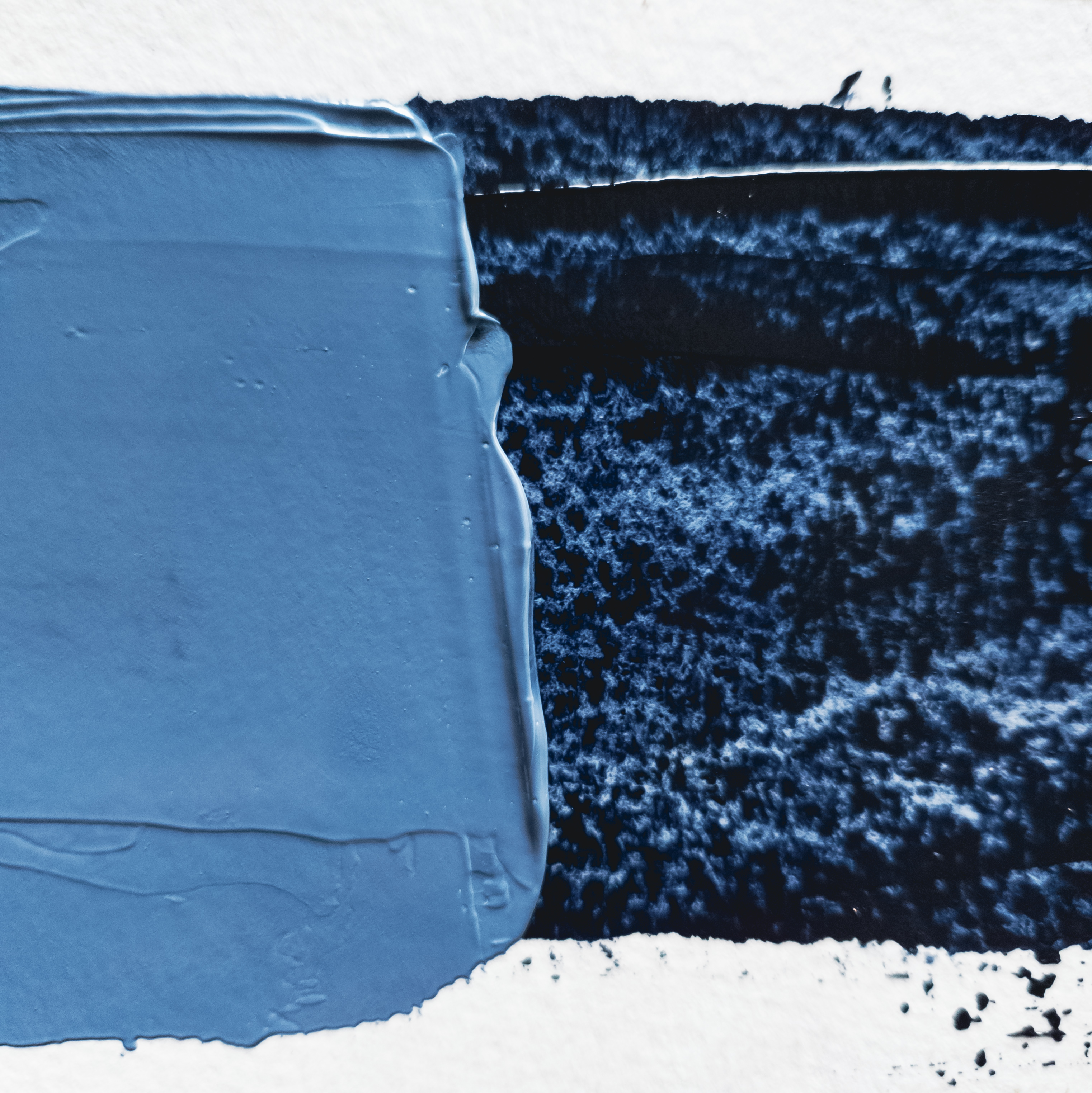 A deep, balanced blue-grey, traditionally formulated from black and blue pigments. Cool in undertone, it offers a softer alternative to pure black with excellent versatility. In masstone it appears near-black; mixed with white it produces subtle, atmospheric greys. Ground in linseed and walnut oils for a smooth, slightly fluid handling. Drying time varies depending on composition, generally suitable across all layers.